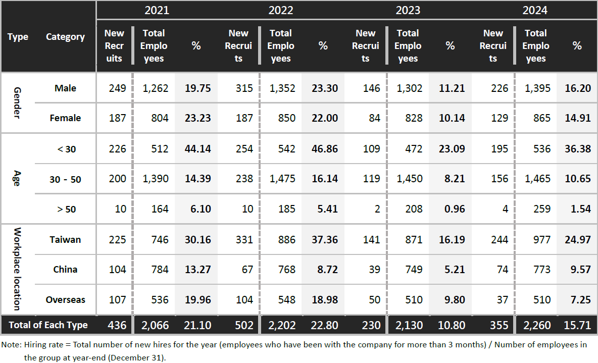 CWTC Group views employees as our most valuable asset and incorporates this perspective into our recruitment, compensation design, performance management, and training policies and systems, with a focus on enhancing both company growth and employee effectiveness. We prioritize hiring local talent as partners, believing that mutual success with employees is key to the Company's sustainable development and enables employees to enjoy their work and harness collective strength.